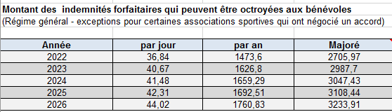 ⚠️ Indemnités pour les bénévoles , montants indexés en 2026